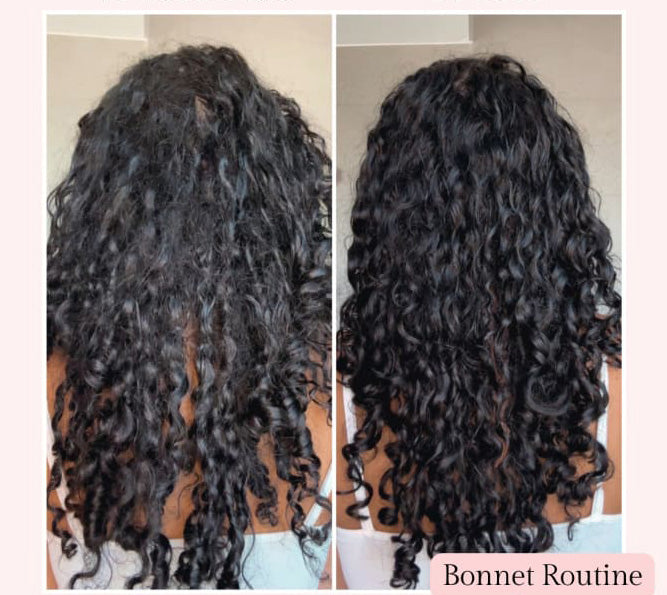 Wake up to smoother, shinier, and frizz-free hair with our premium silk bonnet. By reducing friction and locking in moisture while you sleep, it helps prevent breakage and dryness. Effortlessly maintain healthy, nourished hair—just look at the before and after!
